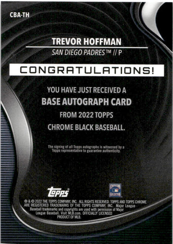 2022 Trevor Hoffman Topps Chrome Black GREEN REFRACTOR AUTOGRAPH AUTO 72/99 #CBA-TH San Diego Padres