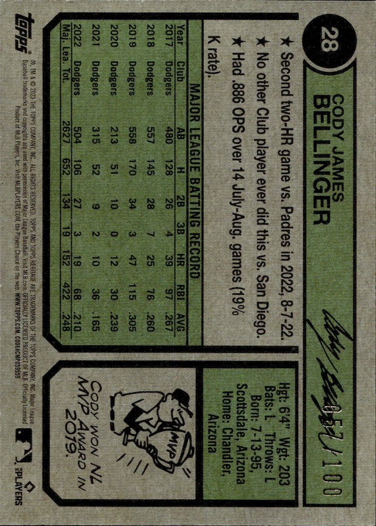 2023 Cody Bellinger Topps Heritage MINI 57/100 Chicago Cubs #28