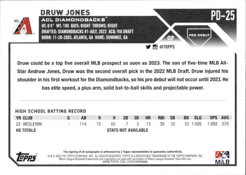 2023 Druw Jones Topps Pro Debut AUTOGRAPH AUTO #PD-25 Arizona Diamondbacks