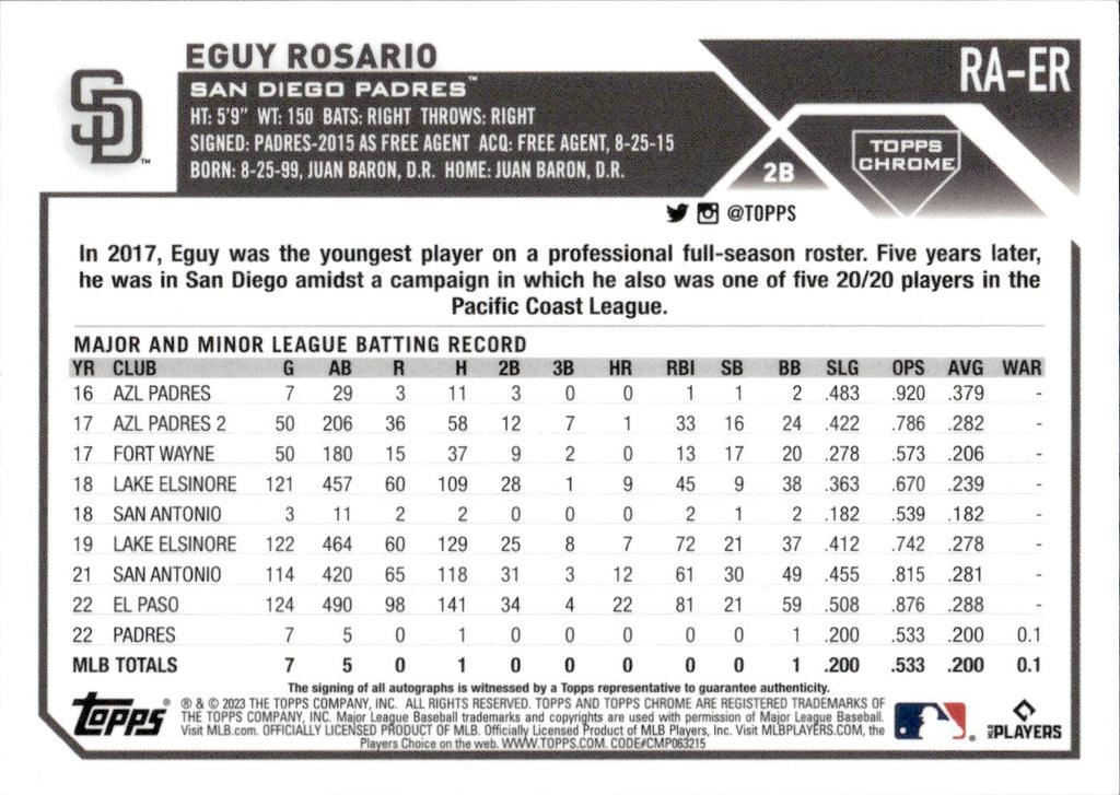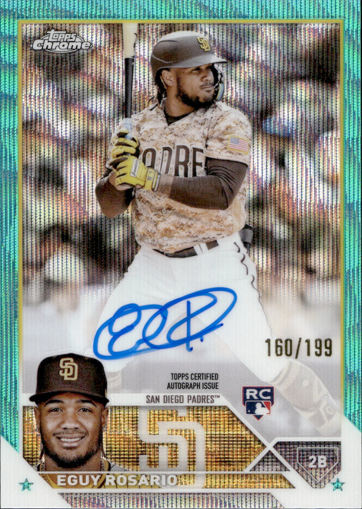 2023 Eguy Rosario Topps Chrome AQUA WAVE REFRACTOR AUTOGRAPH ROOKIE 160/199 AUTO RC #RA-ER San Diego Padres