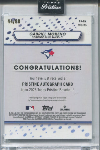 2023 Gabriel Moreno Topps Pristine ROOKIE PULSAR REFRACTOR AUTO 44/99 AUTOGRAPH RC #PA-GM Toronto Blue Jays