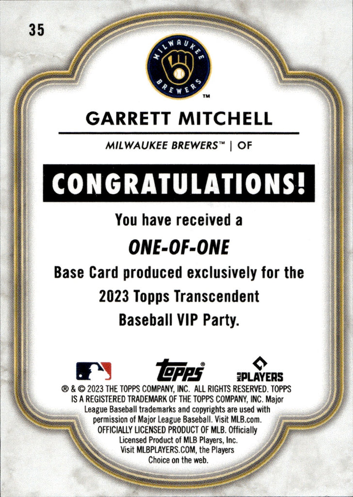 2023 Garrett Mitchell Topps Transcendent VIP Party ROOKIE 1/1 ONE OF ONE RC #35 Milwaukee Brewers