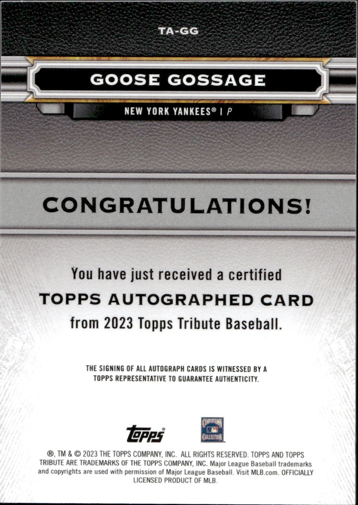 2023 Goose Gossage Topps Tribute GREEN AUTO 03/99 AUTOGRAPH #TA-GG New York Yankees HOF