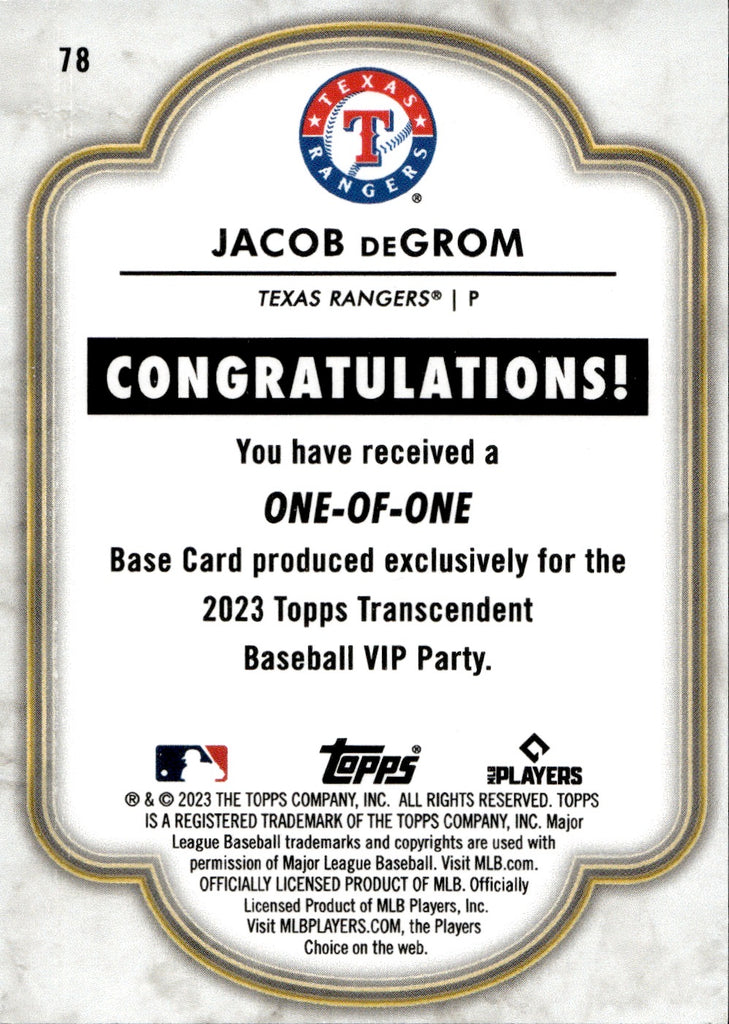 2023 Jacob deGrom Topps Transcendent VIP Party 1/1 ONE OF ONE #78 Texas Rangers