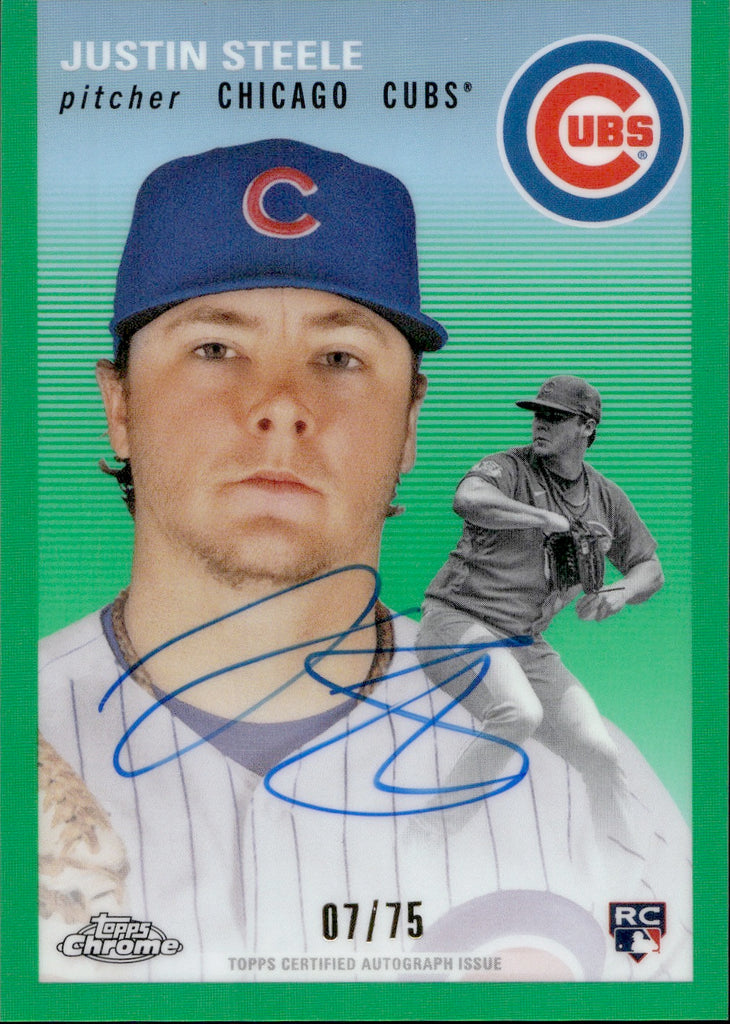 2023 Justin Steele Topps Chrome Platinum Anniversary GREEN REFACTOR AUTOGRAPH ROOKIE AUTO RC 7/75 #CPA-JST Chicago Cubs