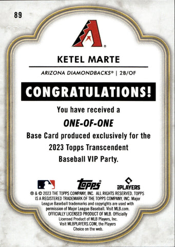 2023 Ketel Marte Topps Transcendent VIP Party 1/1 ONE OF ONE #89 Arizona Diamondbacks