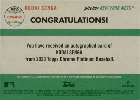 2023 Kodai Senga Topps Chrome Platinum Anniversary BLUE PRISM AUTOGRAPH ROOKIE 67/99 AUTO RC #CPA-KSE New York Mets