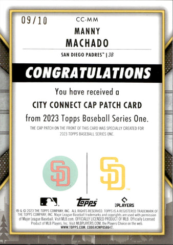 2023 Manny Machado Topps SERIES 1 CITY CONNECT CAP PATCH CARD GOLD 9/10 #CC-MM San Diego Padres