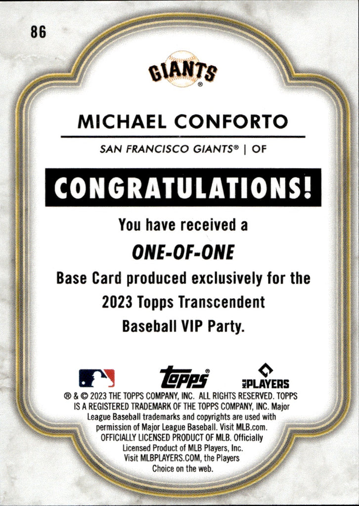2023 Michael Conforto Topps Transcendent VIP Party 1/1 ONE OF ONE #86 San Francisco Giants