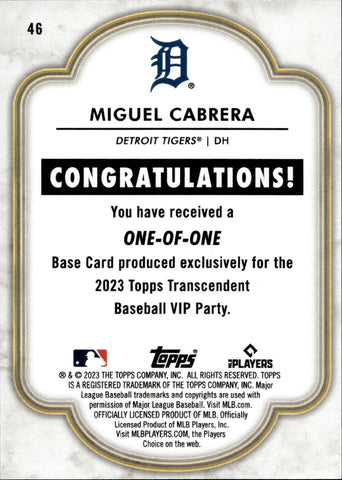 2023 Miguel Cabrera Topps Transcendent VIP Party 1/1 ONE OF ONE #46 Detroit Tigers