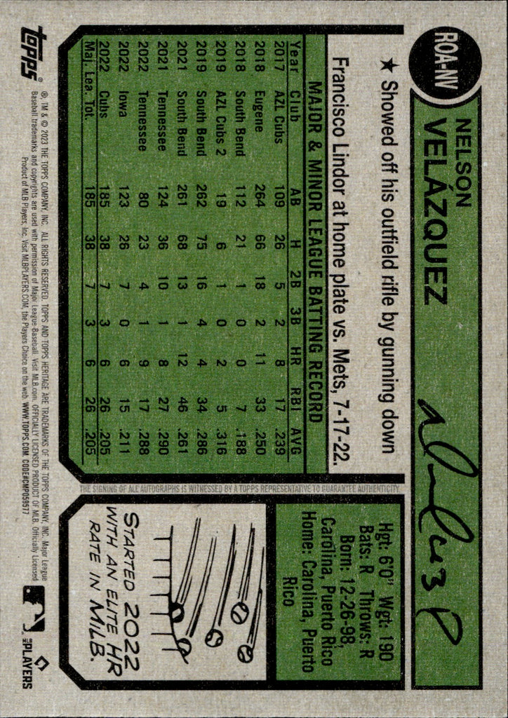 2023 Nelson Velazquez Topps Heritage REAL ONE ROOKIE AUTO Chicago Cubs #ROA-NV