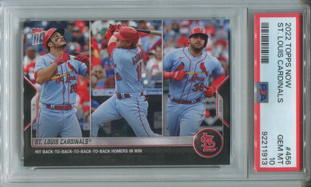 2023 Nolan Arenado Dylan Carlson Juan Yepez Nolan Gorman Topps Now BACK TO BACK TO BACK TO BACK HOME RUNS PSA 10 #456 St. Louis Cardinals 1913