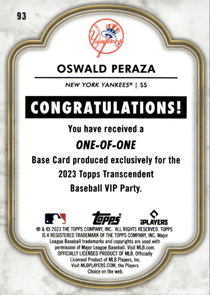 2023 Oswald Peraza Topps Transcendent VIP Party ROOKIE 1/1 ONE OF ONE RC #93 New York Yankees