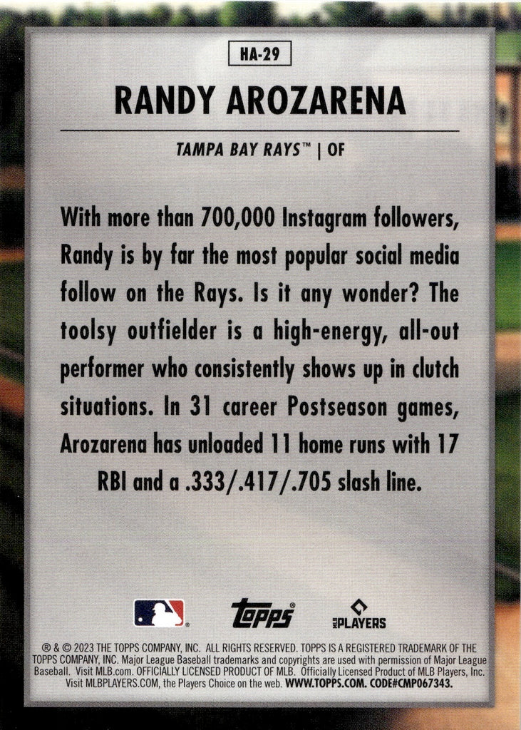 2023 Randy Arozarena Topps Update Series HOME FIELD ADVANTAGE #HA-29 Tampa Bay Rays