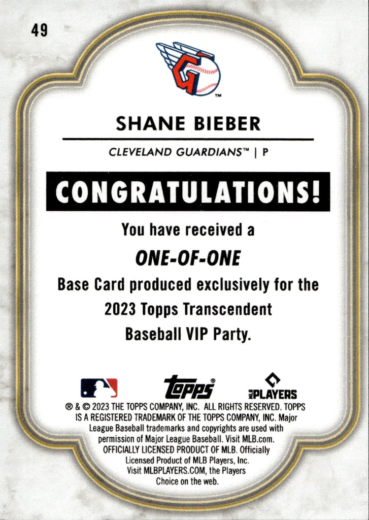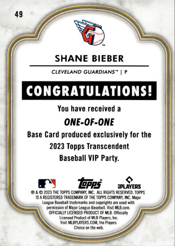 2023 Shane Beiber Topps Transcendent VIP Party 1/1 ONE OF ONE #49 Cleveland Guardians