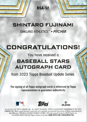 2023 Shintaro Fujinami Topps BASEBALL STARS AUTOGRAPH ROOKIE AUTO RC #BSA-SF Oakland A's