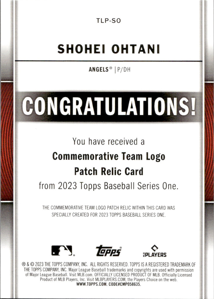 2023 Shohei Ohtani Topps COMMEMORATIVE TEAM LOGO PATCH RELIC #TLP-SO Los Angeles Angels