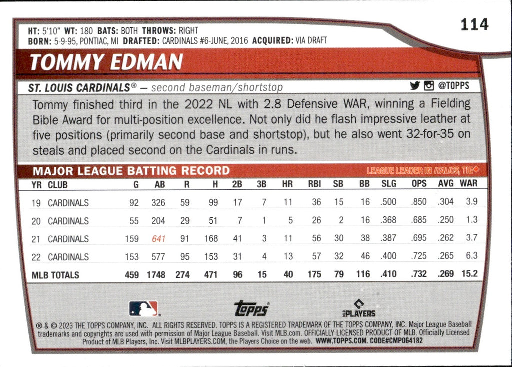 2023 Tommy Edman Topps Big League BLACK BORDER 09/25 #114 St. Louis Cardinals