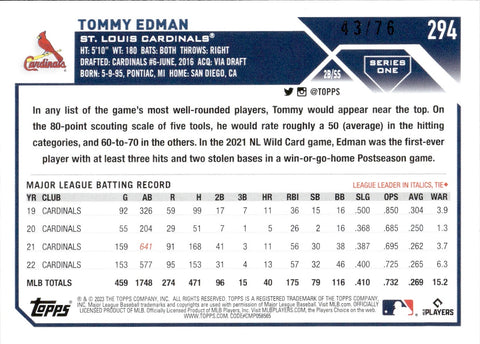 2023 Tommy Edman Topps Series 1 INDEPENDENCE DAY 43/76 #294 St. Louis Cardinals