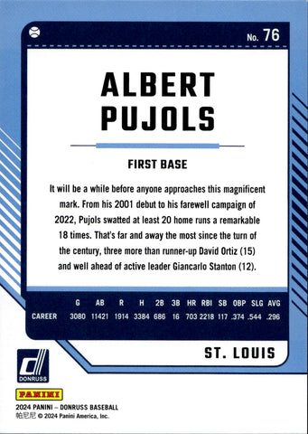 2024 Albert Pujols Panini Donruss BLACK 1/1 ONE OF ONE #76 St. Louis Cardinals