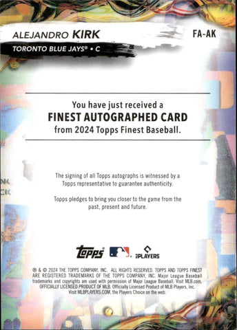2024 Alejandro Kirk Topps Finest GOLD REFRACTOR AUTOGRAPH 40/50 AUTO #FA-AK Toronto Blue Jays