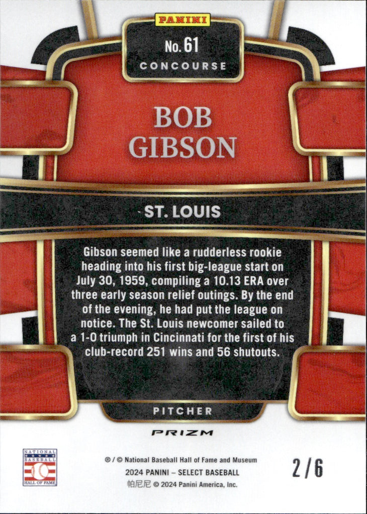 2024 Bob Gibson Panini Select CONCOURSE FOTL MOJO PRIZM 2/6 #12 St. Louis Cardinals