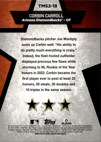2024 Corbin Carroll Topps Series 2 PURPLE MEGA STARS 07/75 #TMS2-18 Arizona Diamondbacks