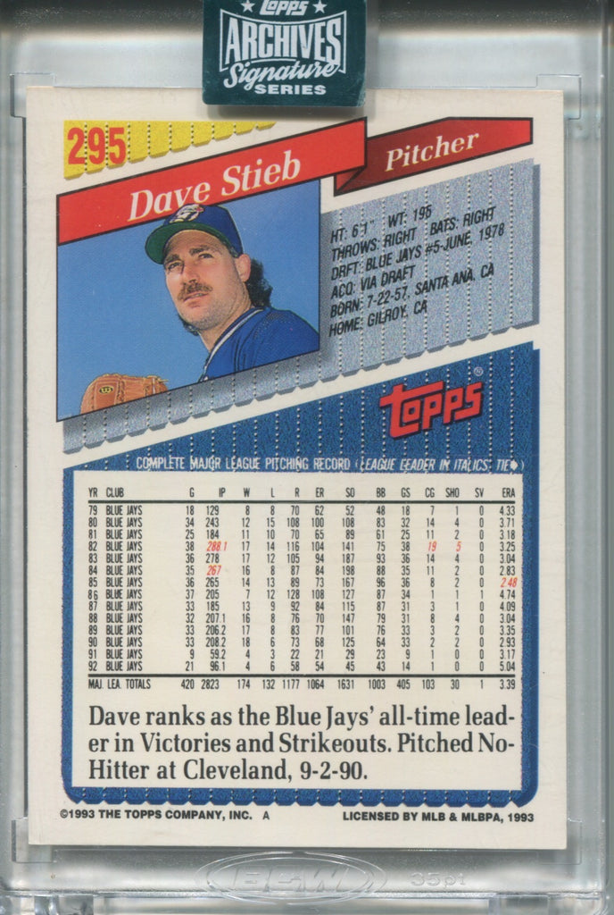 2024 Dave Stieb Topps Archives AUTO 82/83 AUTOGRAPH #295 Toronto Blue Jays