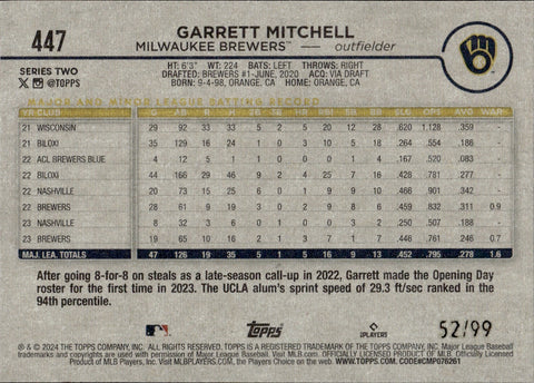 2024 Garrett Mitchell Topps Series 2 VINTAGE STOCK FUTURE STARS 52/99 #447 Milwaukee Brewers