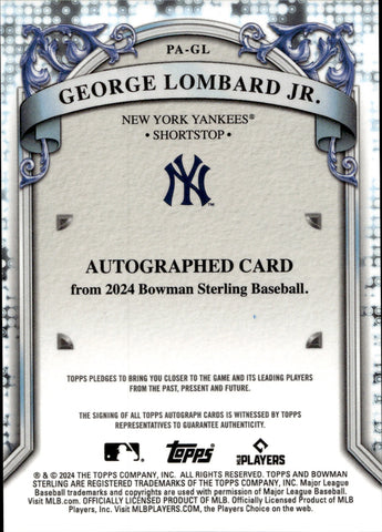 2024 George Lombard Jr. Bowman Sterling AUTO AUTOGRAPH #PA-GL New York Yankees