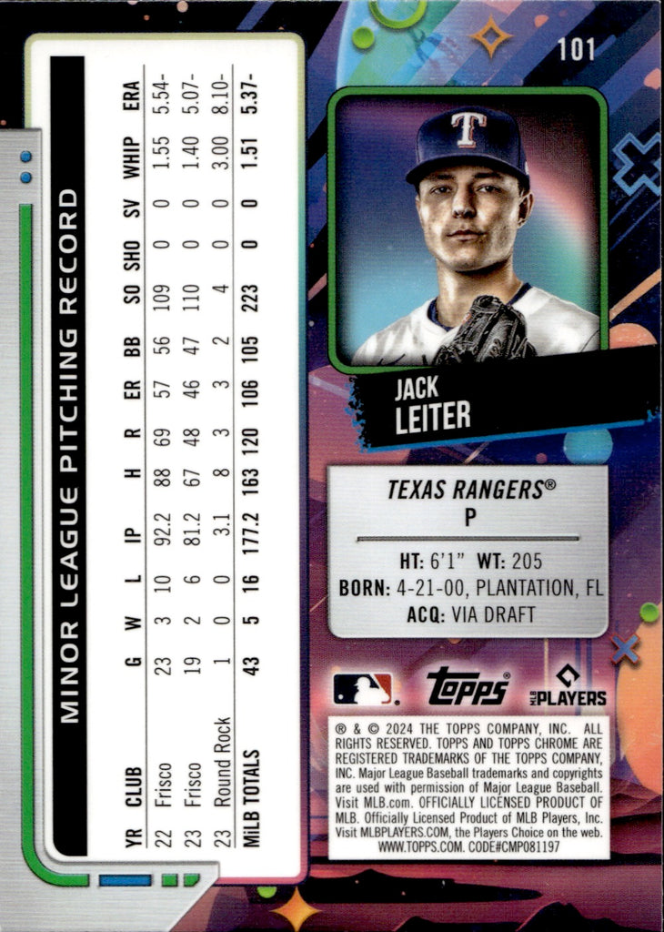 2024 Jack Leiter Topps Cosmic Chrome BLUE PULSAR REFRACTOR ROOKIE 75/99 RC #101 Texas Rangers