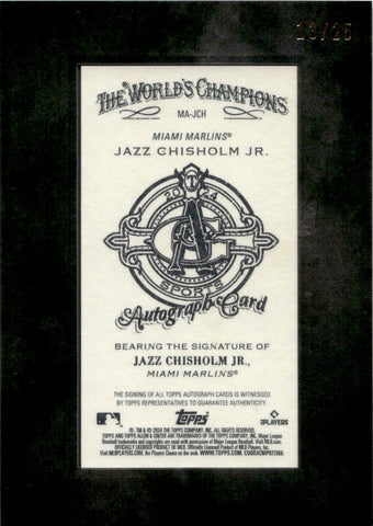 2024 Jazz Chisholm Jr. Topps Allen & Ginter MINI BLACK FRAMED AUTO 13/25 AUTOGRAPH #MA-JCH Miami Marlins