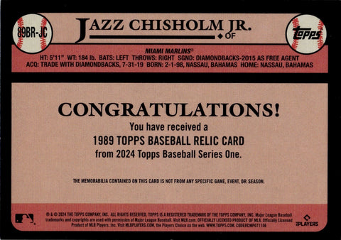 2024 Jazz Chisholm Jr. Topps Series 1 GOLD BORDER 1989 DESIGN JERSEY 45/50 RELIC #89BR-JC Miami Marlins
