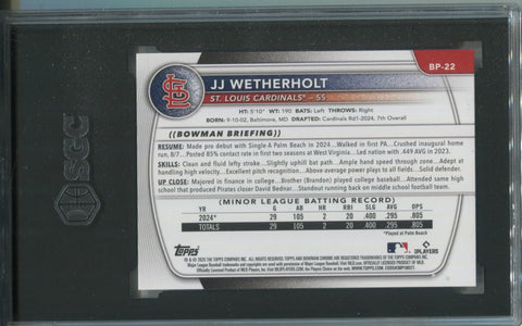 2025 JJ Wetherholt Bowman 1ST BOWMAN PROSPECT SGC 9.5 #BP-22 St. Louis Cardinals 2887