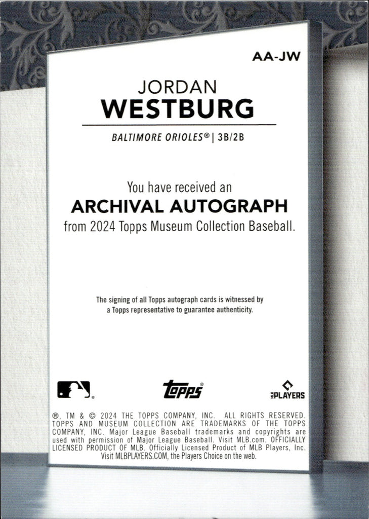 2024 Jordan Westburg Topps Museum Collection ROOKIE ARCHIVAL AUTO 015/299 AUTOGRAPH RC #AA-JW Baltimore Orioles