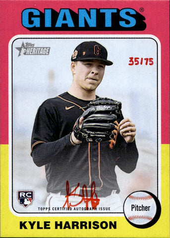 2024 Kyle Harrison Topps Heritage ROOKIE RED INK REAL ONE AUTO 35/75 AUTOGRAPH #ROA-KHA San Francisco Giants