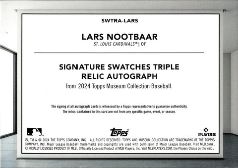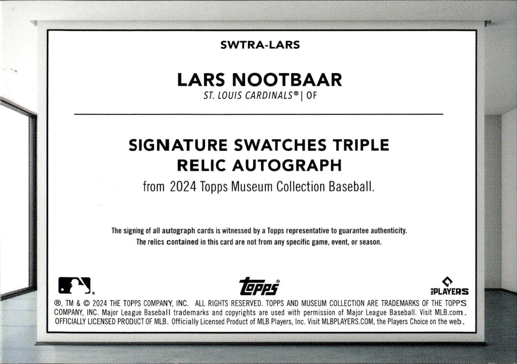 2024 Lars Nootbaar Topps Museum SIGNATURE SWATCHES TRIPLE PATCH AUTO 16/20 AUTOGRAPH RELIC #SWTRA-LARS St. Louis Cardinals