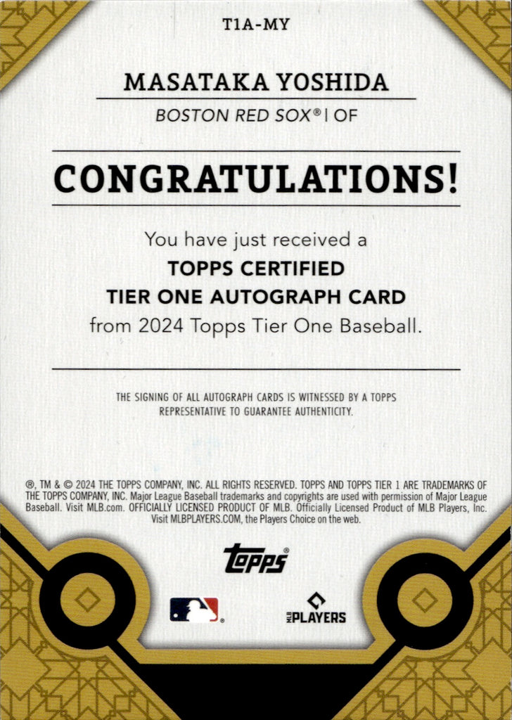 2024 Masataka Yoshida Topps Tier One AUTO 37/49 AUTOGRAPH #T1A-MY Boston Red Sox