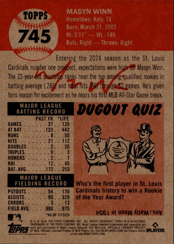 2024 Masyn Winn Topps Living Set ROOKIE /2541 RC #745 St. Louis Cardinals 5