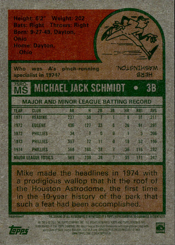2024 Mike Schmidt Topps Heritage REAL ONE AUTO AUTOGRAPH #75ROMS Philadelphia Phillies HOF