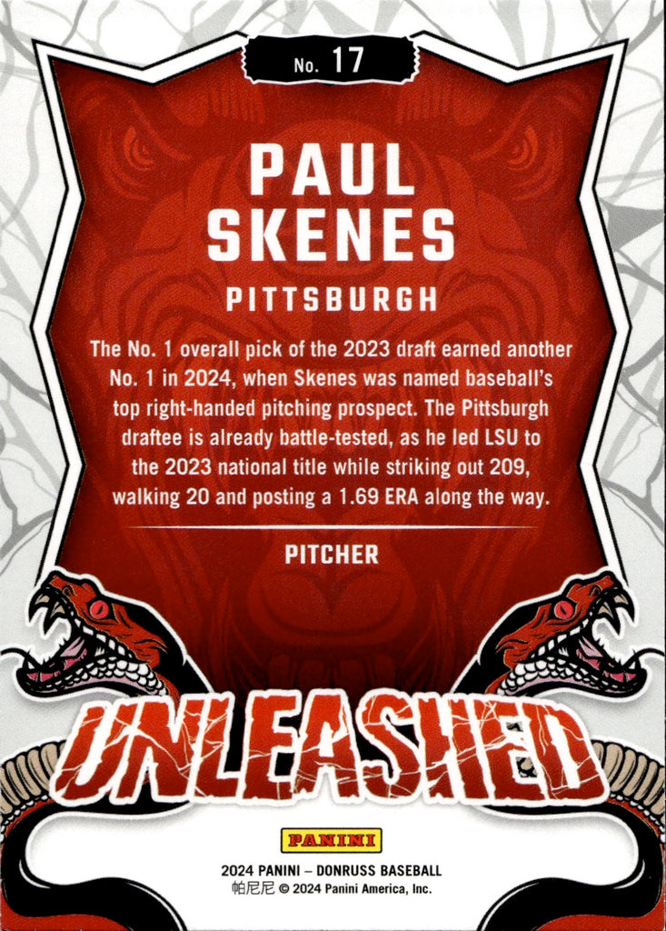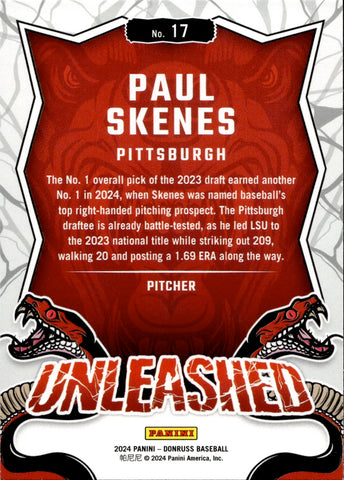 2024 Paul Skenes Panini Donruss UNLEASHED ROOKIE Pittsburgh Pirates #17
