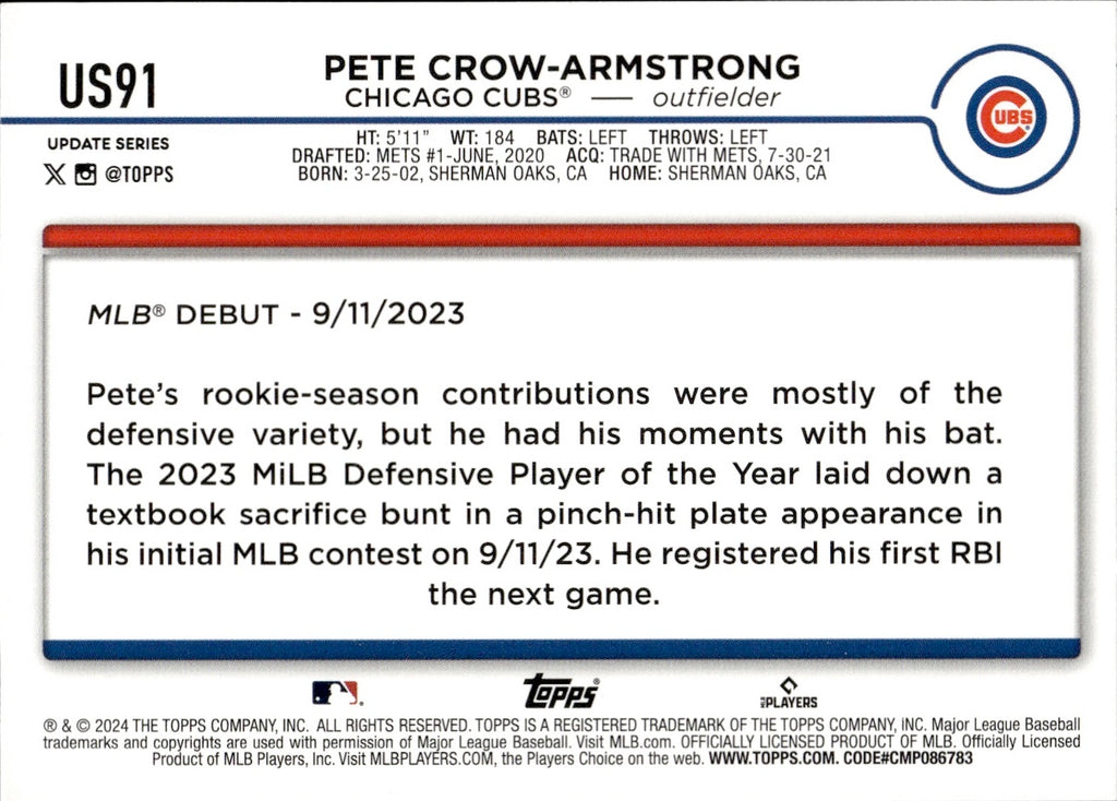 2024 Pete Crow-Armstrong Topps Update JACK O'LANTERN SP ROOKIE RC #US91 Chicago Cubs