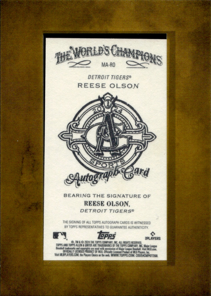 2024 Reese Olson Topps Allen & Ginter ROOKIE MINI FRAMED AUTO AUTOGRAPH RC #MA-RO Detroit Tigers