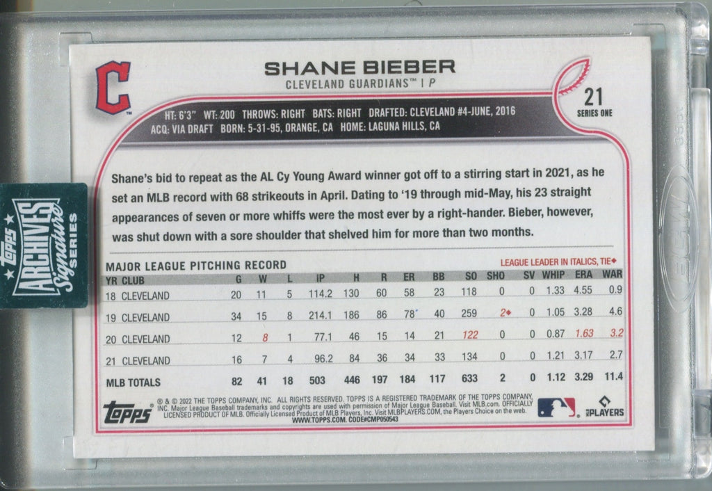 2024 Shane Bieber Topps Archives AUTO 64/75 AUTOGRAPH #21 Cleveland Guardians