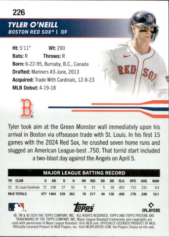 2024 Tyler O'Neill Topps Pristine ORANGE REFRACTOR 15/25 #226 Boston Red Sox