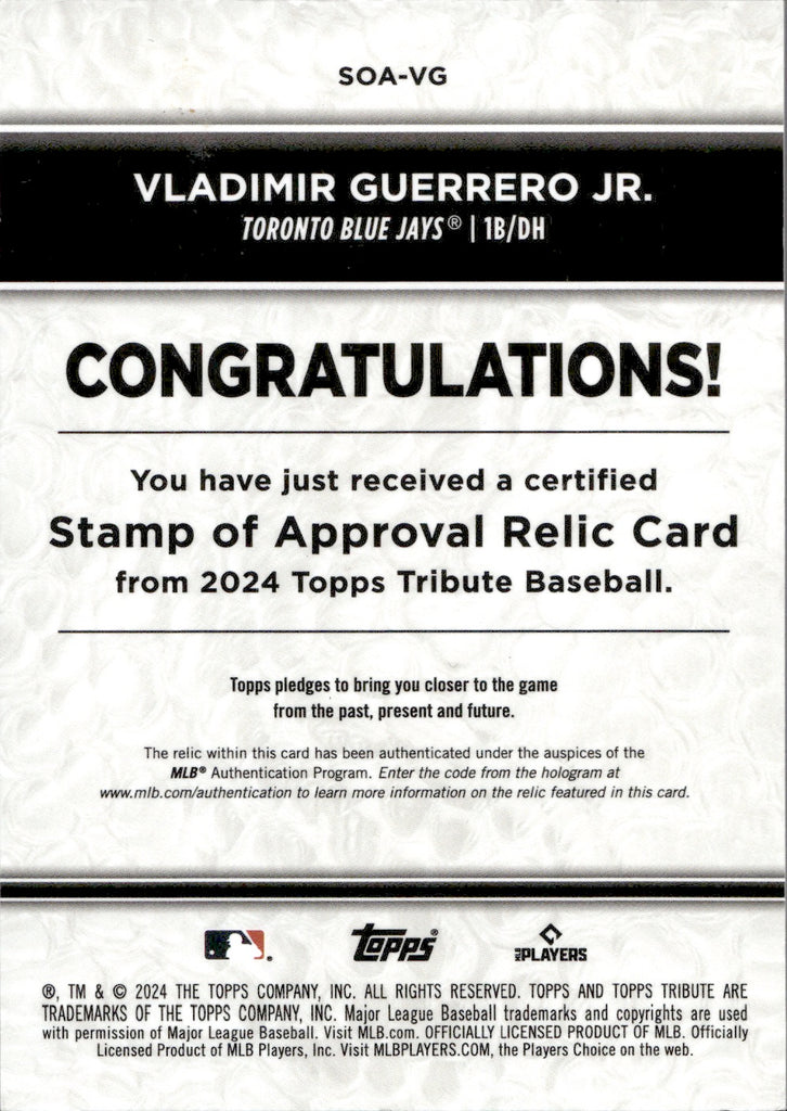 2024 Vladimir Guerrero Jr. Topps Tribute STAMP OF APPROVAL RELIC JERSEY 73/75 #SOA-VG Toronto Blue Jays