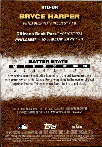 2025 Bryce Harper Topps ROUNDING THE BASES BASE 69/99 RELIC #RTB-BR Philadelphia Phillies