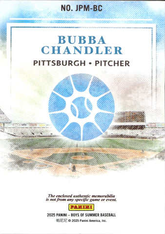 2025 Bubba Chandler Panini Boys of Summer JUMBO PROSPECT MATERIALS JERSEY 67/99 #JPM-BC Pittsburgh Pirates