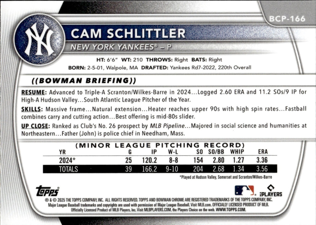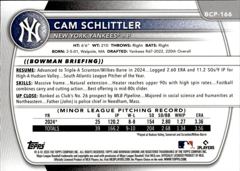 2025 Cam Schlitter Bowman Chrome 1ST BOWMAN MEGA BOX MOJO #BCP-166 New York Yankees