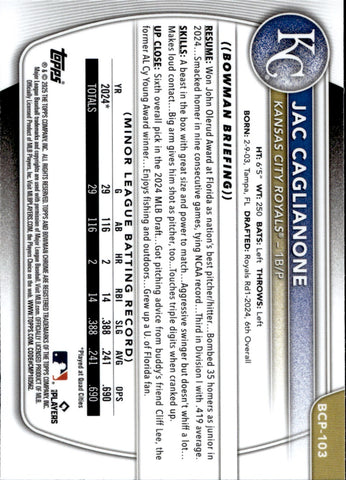 2025 Jac Caglianone Bowman Chrome MEGA BOX REFRACTOR PROSPECT Kansas City Royals #BCP-103